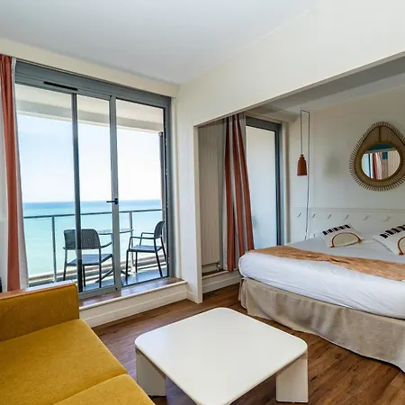 Το ξενοδοχείο Residence Vacances Bleues Le Grand Large Μπιαρίτζ 3 αστέρων, το οποίο αποτελείται από 164 δωμάτια, απέχει 600 μέτρα από την ακτογραμμή. Το οικογενειακό ξενοδοχείο βρίσκεται στο κέντρο της πόλης και διαθέτει lounge bar και πισίνα υπερχείλισης.